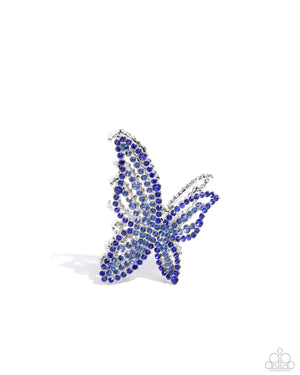 Fluttering Falsetto Blue Rhinestone Butterfly Hair Clip - Paparazzi Accessories