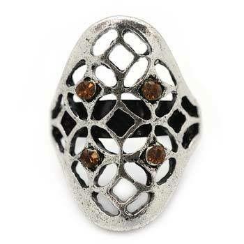 $8.00Vintage Décor Silver and Brown Ring - Paparazzi Accessories