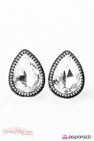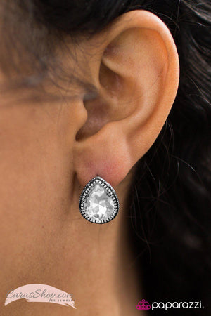 Big City Romance - White Teardrop Gem Post Earrings - Paparazzi Accessories