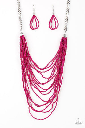Bora Bombora - Pink Seed Bead Necklace and matching Earrings - Paparazzi Accessories