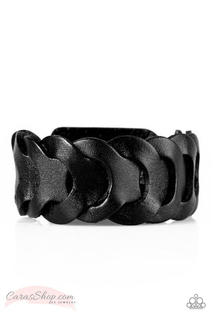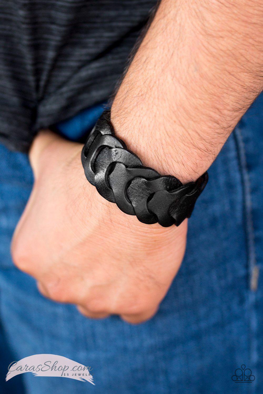 Boys Round Here Men's Black Leather Bracelet - Paparazzi Accessories
