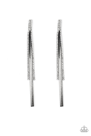 Flavor of the SLEEK Black Gunmetal and White Rhinestone Chain Earrings - Paparazzi Accessories