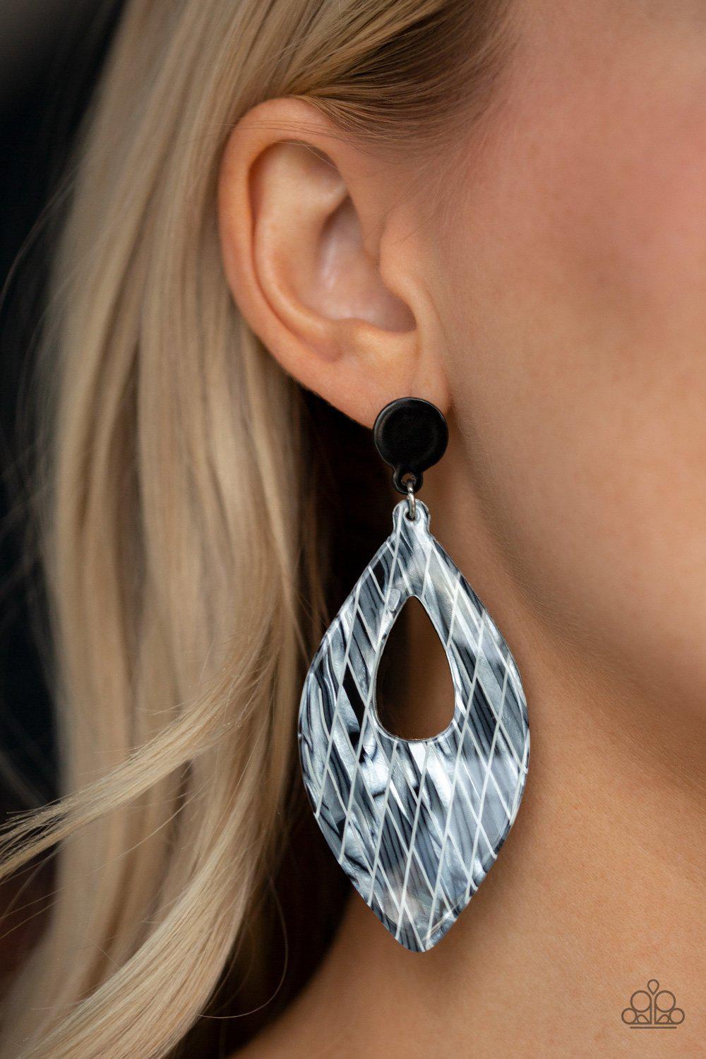 Metro Retrospect White and Black Marble print Acrylic Earrings - Paparazzi Accessories