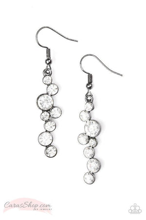 Milky Way Magnificence - Gunmetal and White Rhinestone Earrings - Paparazzi Accessories