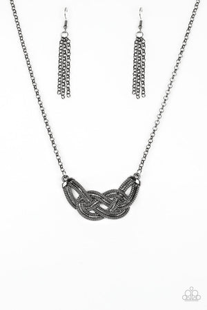 Nautically Naples Black Gunmetal Necklace and matching Earrings - Paparazzi Accessories