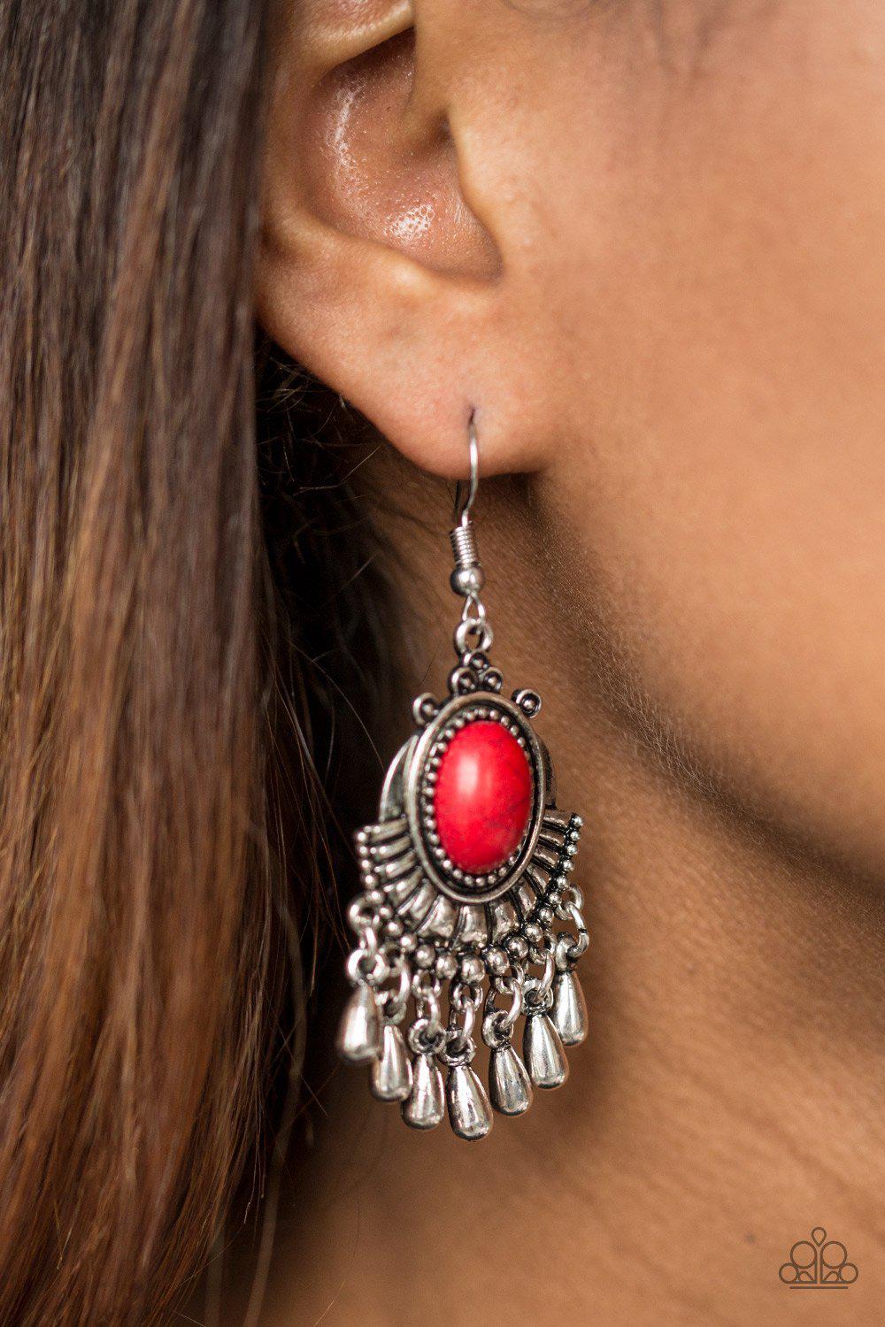 Onward and Westward Red Stone Earrings - Paparazzi Accessories