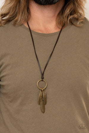 Bird Watcher Brown and Brass Feather Urban Necklace - Paparazzi Accessories
