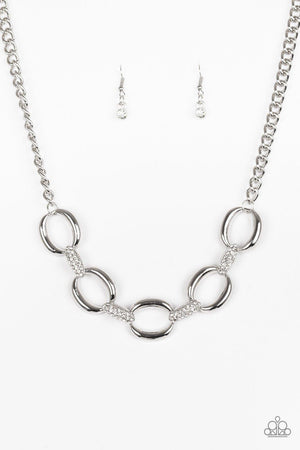 Boss Boulevard Silver and White Rhinestone Necklace - Paparazzi Accessories