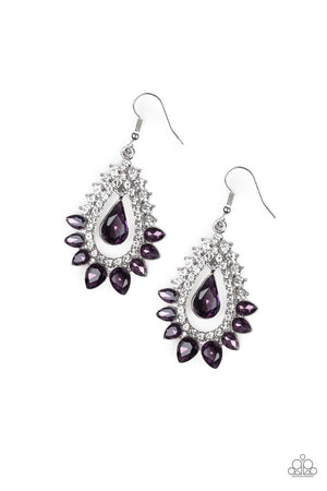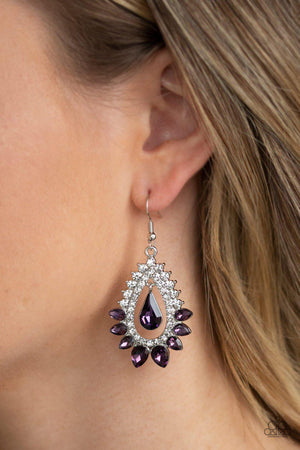Boss Brilliance Purple and White Rhinestone Earrings - Paparazzi Accessories