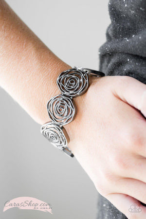 Beat Around The ROSEBUSH - Black Flower Stretch Bracelet - Paparazzi Accessories