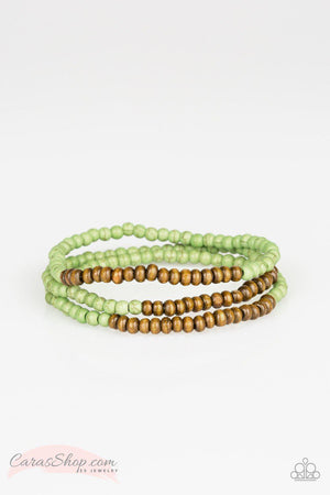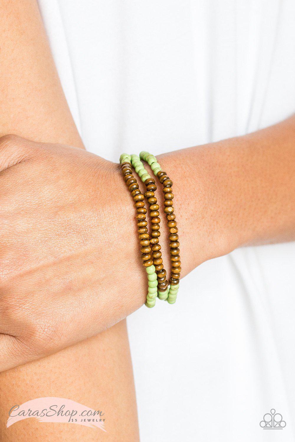 Woodland Wanderer Green Stone and Wood Bead Stretch Bracelet Set - Paparazzi Accessories