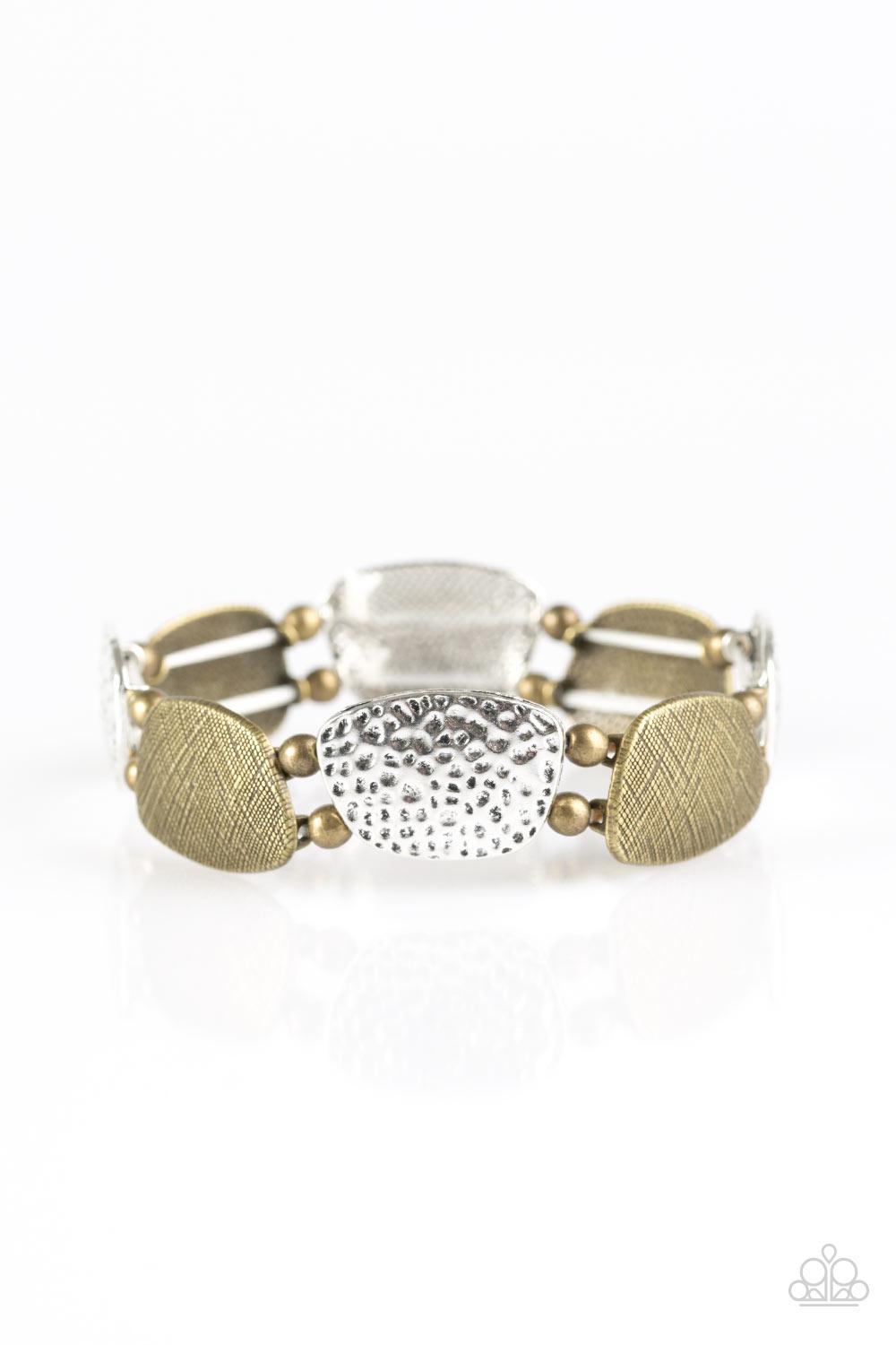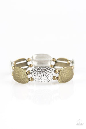 Cave Chic Silver and Brass Stretch Bracelet - Paparazzi Accessories