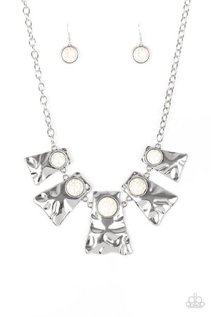 Cougar White Stone and Silver Necklace - Paparazzi Accessories