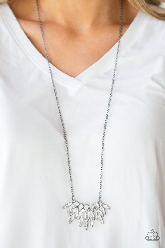 Crowning Moment Gunmetal Black and White Rhinestone Necklace - Paparazzi Accessories