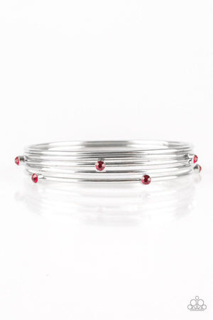 Delicate Decadence Red Rhinestone and Silver Bangle Bracelet Set - Paparazzi Accessories