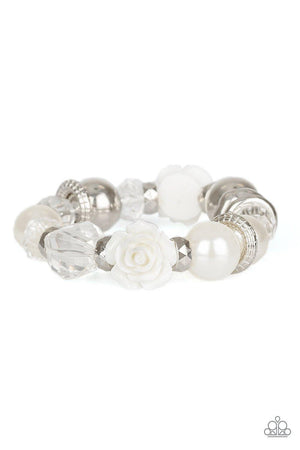 Here I Am White Flower Bracelet - Paparazzi Accessories