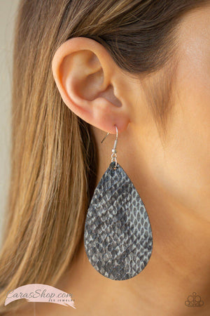 Hiss, Hiss Silver Leather Animal Print Earrings - Paparazzi Accessories
