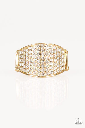 Kaboom! Gold and White Rhinestone Ring - Paparazzi Accessories