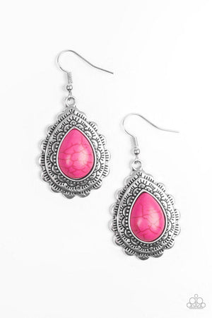 Mesa Mustang Pink Stone Teardrop Earrings - Paparazzi Accessories