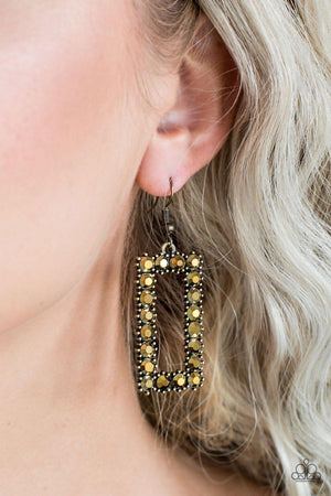 Mirror Mirror Brass Rhinestone Earrings - Paparazzi Accessories