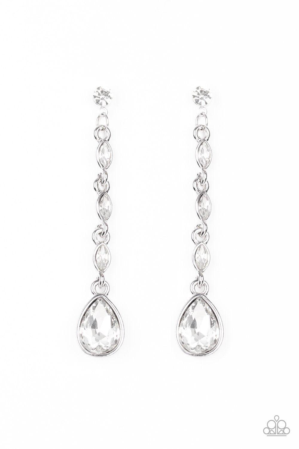 Must Love Diamonds White Rhinestone Earrings - Paparazzi Accessories