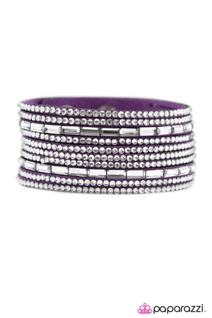 Name Your Price Purple and White Rhinestone Urban Wrap Snap Bracelet - Paparazzi Accessories