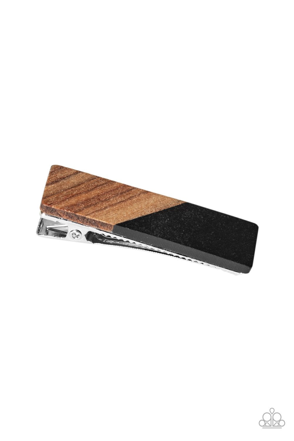 Never HAIR The End Of It Black Acrylic and Brown Wood Hair Clip - Paparazzi Accessories