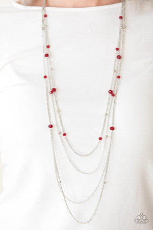 On The Front Shine Long Red and Silver Necklace - Paparazzi Accessories