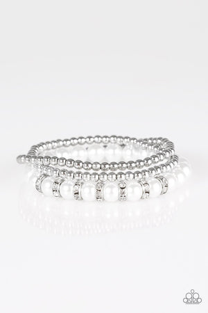 Perfect Posh-ture Silver and White Pearl Bracelet Set - Paparazzi Accessories
