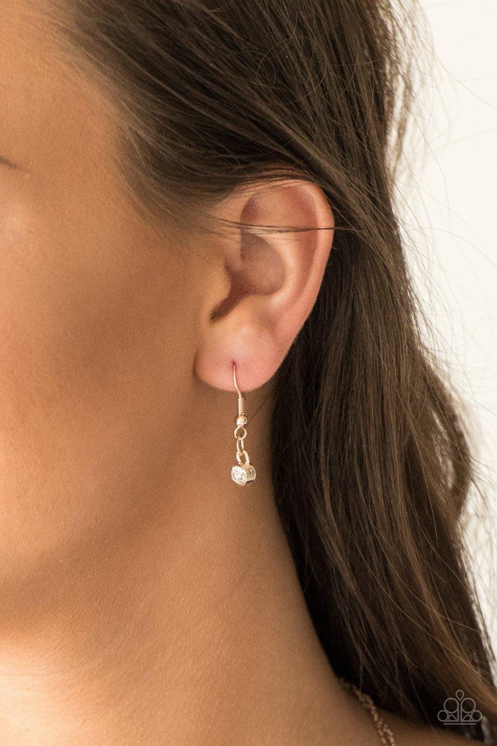 Pretty Petite Rose Gold and White Rhinestone Necklace - Paparazzi Accessories