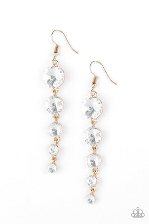 Raining Rhinestones Gold and White Gem Earrings - Paparazzi Accessories