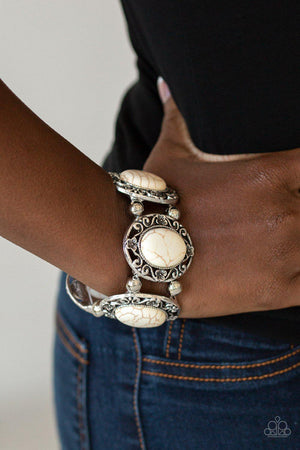 Rodeo Rancho White Stone and Silver Stretch Bracelet - Paparazzi Accessories