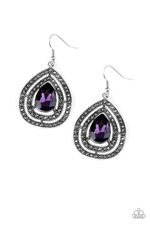 Royal Squad Purple Rhinestone Teardrop Earrings - Paparazzi Accessories