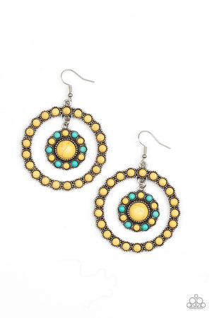 Saguaro Sanctuary Yellow & Turquoise Stone Earrings - Paparazzi Accessories