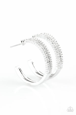 Slay Your Way White Rhinestone Hoop Earrings - Paparazzi Accessories