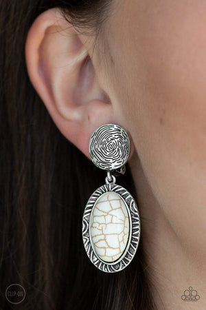 Southern Impressions White Stone Clip On Earrings - Paparazzi Accessories