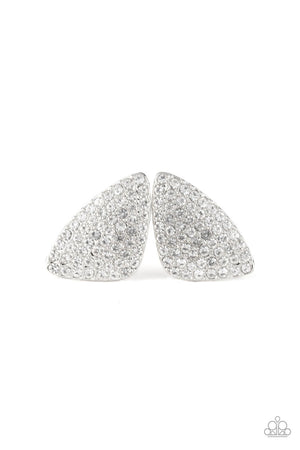 Supreme Sheen White Rhinestone Post Earrings - Paparazzi Accessories