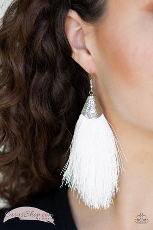 Tassel Temptress White Fringe Earrings - Paparazzi Accessories
