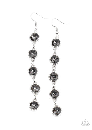 Trickle Down Twinkle Silver Smoky Rhinestone Earrings - Paparazzi Accessories