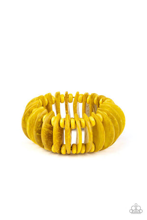Tropical Tiki Bar Yellow Wood Bracelet - Paparazzi Accessories