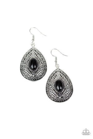 Tropical Topography Black and Silver Teardrop Earrings - Paparazzi Accessories