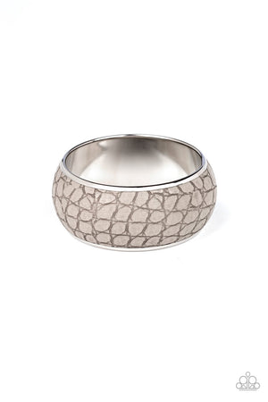 Urban Jungle Silver faux-Croc Bangle Bracelet - Paparazzi Accessories