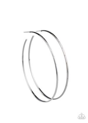 Delicately hammered in a subtle shimmer, a glistening gunmetal wire dramatically curves into an oversized hoop for a flawless finish. Earring attaches to a standard post fitting. Hoop measures approximately 2 3/4" in diameter.