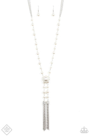 Vintage Diva White Pearl Scarf Necklace - Paparazzi Accessories
