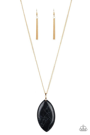 Santa Fe Simplicity Gold and Black Stone Pendant Necklace - Paparazzi Accessories