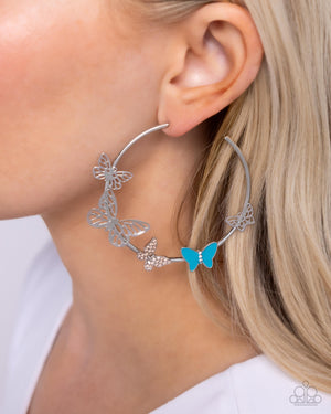 Aerial Allegiance Multi Blue Butterfly Hoop Earrings - Paparazzi Accessories