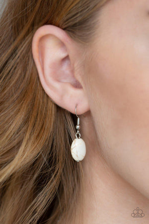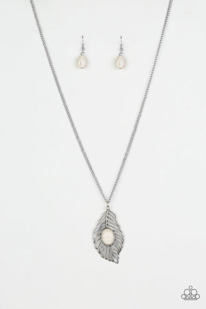 Flight Path White Stone and Silver Feather Necklace - Paparazzi Accessories