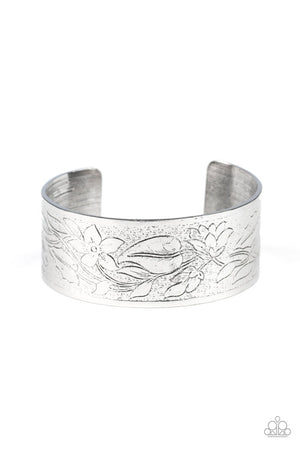 Garden Variety Silver Floral Cuff Bracelet- Paparazzi Accessories