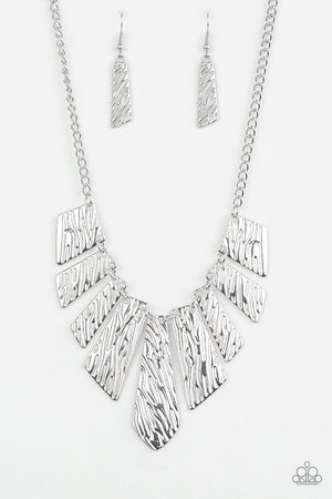 Texture Tigress Silver Necklace and matching Earrings - Paparazzi Accessories