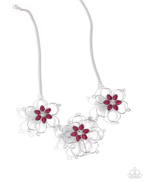 Wiry Welcome Pink Rhinestone Floral Necklace - Paparazzi Accessories